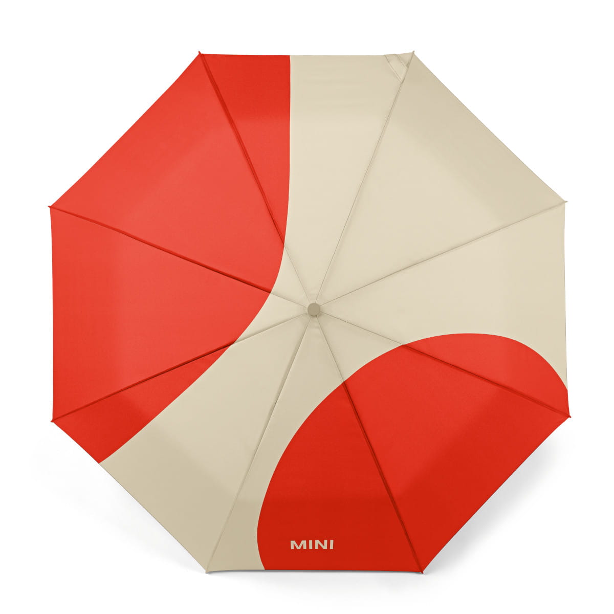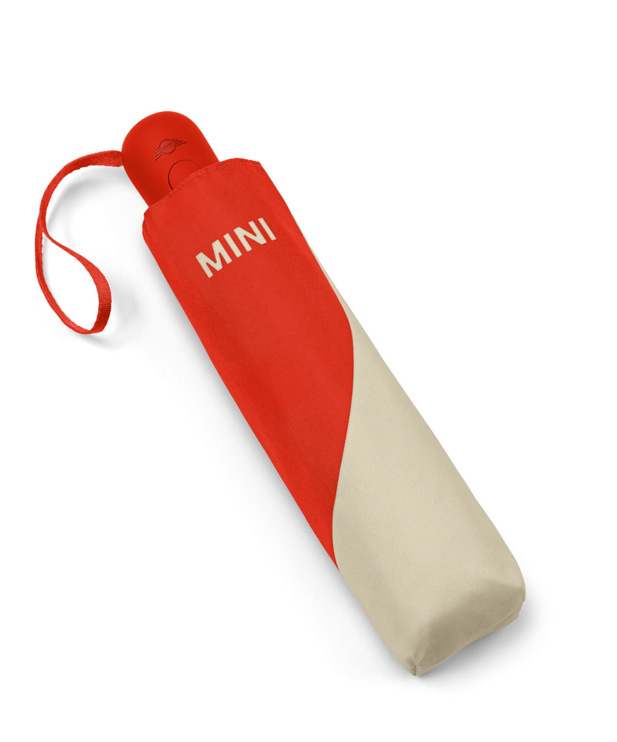 "MINI логотипі бар жиналмалы қолшатыры.Желге төзімділік сағатына 120 км/сағ дейін.Ашып-жабуға арналған батырма.Батырмасы бар бекіту белдігі.Жеке тұтқада бедерленген MINI Wing логотипі.Тұтқадағы белдікше."