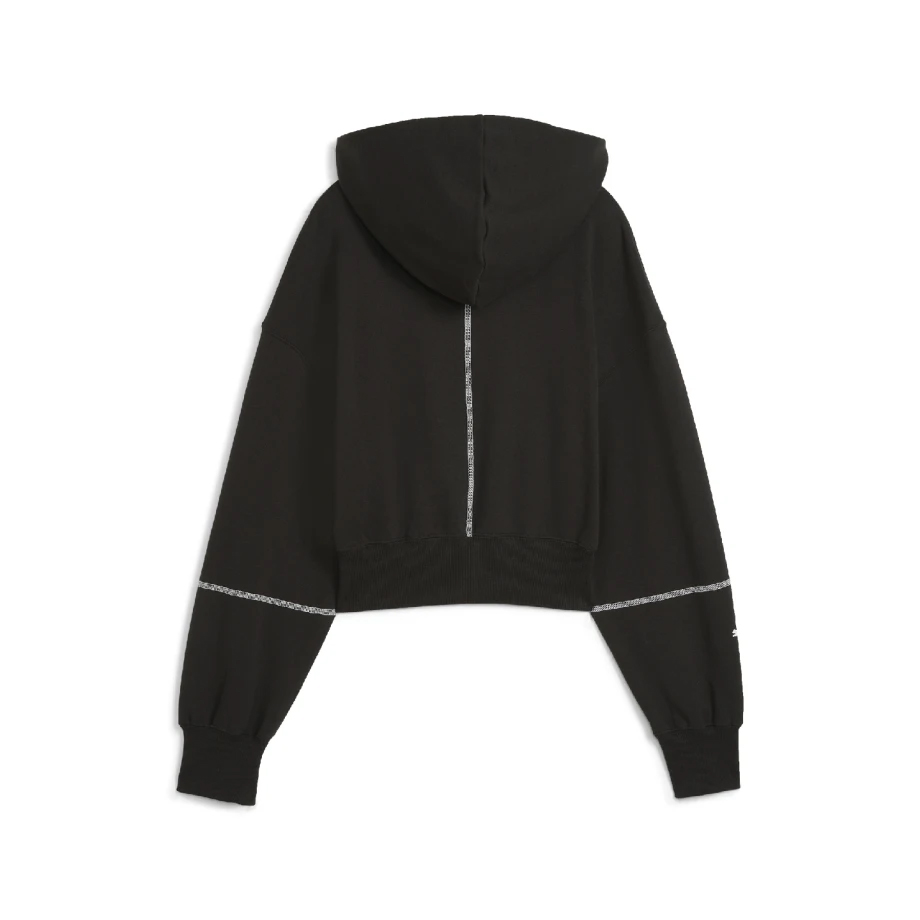 Әйелдерге арналған BMW M Motorsport толстовкасы заманауи силуэтте стильді, жайлылықты және спорттық талғампаздықты біріктіреді. Жартылай сыдырмасы бар және сәл ұзындығы қысқартылған бұл толстовка заманауи көрініс береді және белсенді өмір салты үшін өте қолайлы. Күртке жеңдер мен белбеуіндегі созылғыш таспамен жабдықталған, ол оңтайлы қонымдылықты қамтамасыз етіп қана қоймай, сонымен қатар сәнді элемент қосады. Капюшоны жеке жайлылықты қамтамасыз ету үшін реттелетін баумен жабдықталған. Жеңдердегі талғампаз зергерлік бұйымдар ерекше назар аудартады, бұл толстовкаға ерекше көрініс береді. Сол жақ иығында резеңке принті бар BMW M Motorsport логотипі өзін білдіреді және әйгілі автоспорт брендімен байланысын көрсетеді. Оң жақ жеңіндегі Puma логотипі жоғары сапаны көрсетеді.