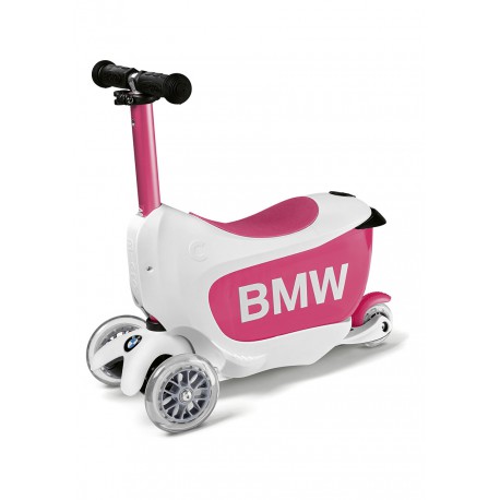Детский самокат BMW примечателен тем, что он может трансформироваться! Дети, в зависимости от возраста и умения, могут ездить на нем, сидя на сидении, или же использовать как самокат. Для этого достаточно снять сидение и выдвижной ящик и отрегулировать стойку руля по высоте под рост ребенка. Практичный выдвижной ящик предназначен для хранения игрушек или же продуктов для перекуса днем. Когда все хорошо уложено, ребенок просто садится сверху и отправляется кататься.